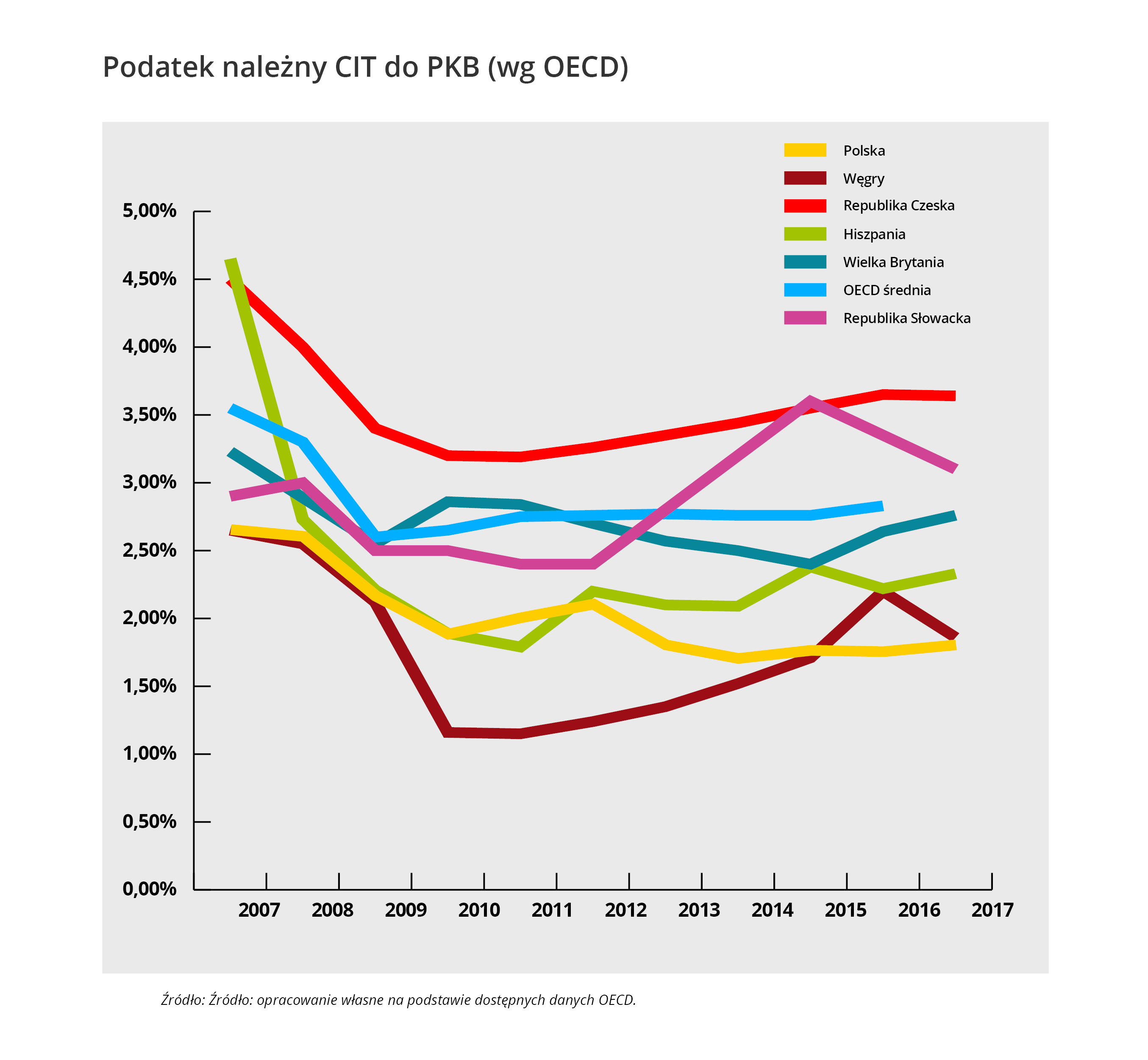 Podatek należny CIT do PKB - porównanie Polski i innych państw
